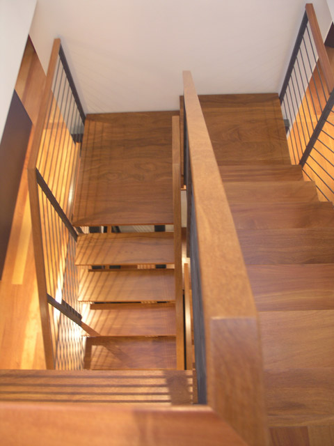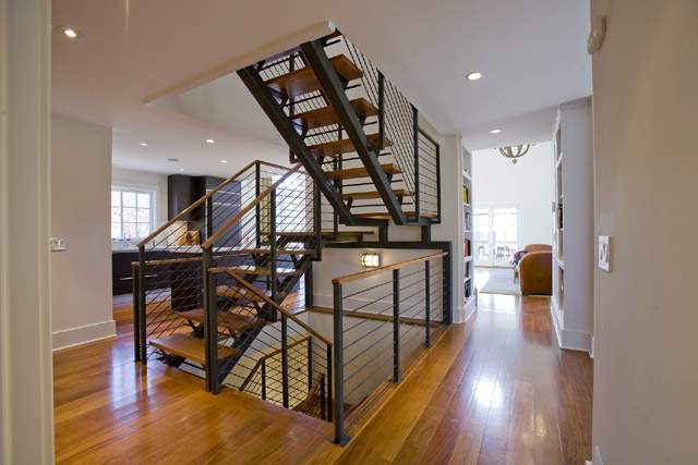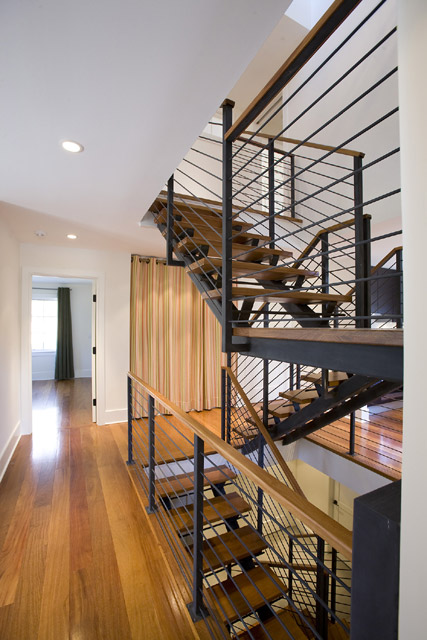 windows, and a seemingly floating steel staircase lend the space an airy, bright