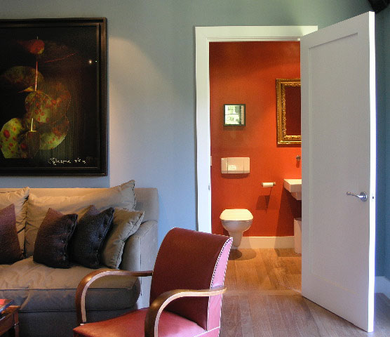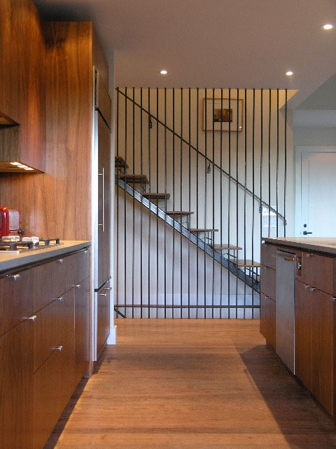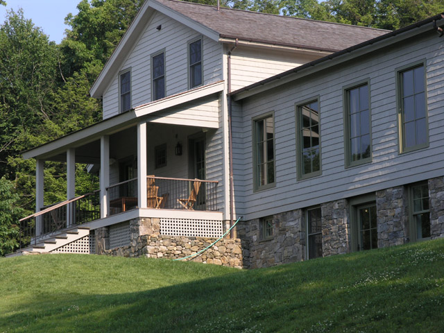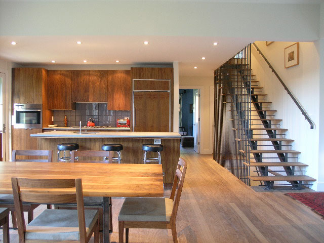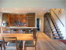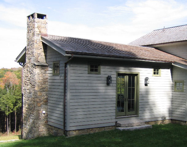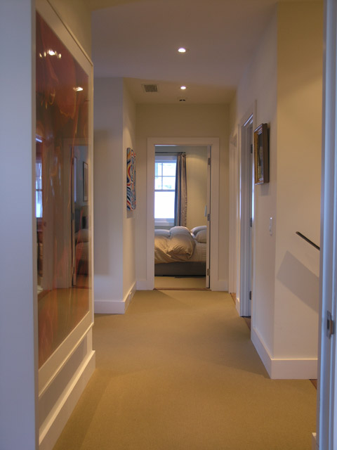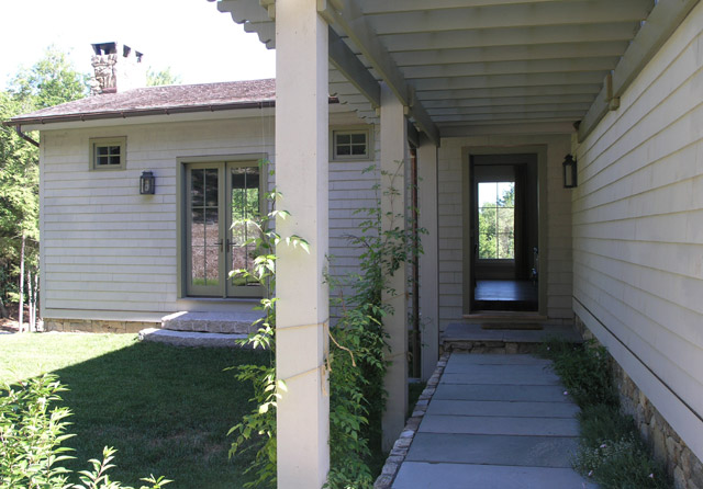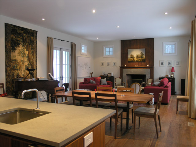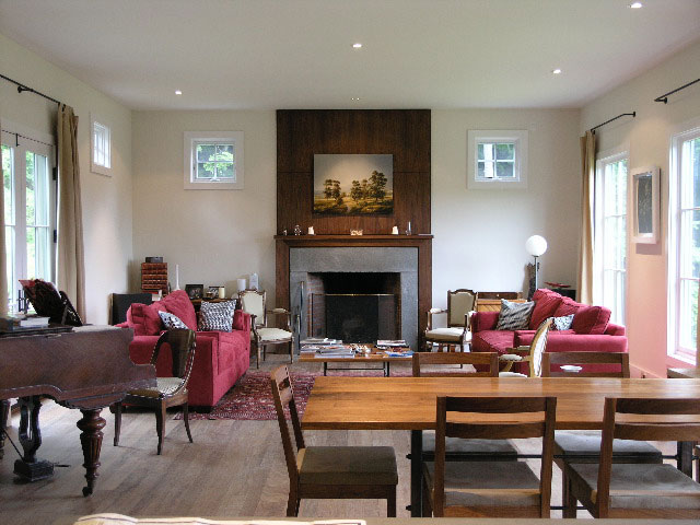 The house had to be traditional from the outside, but modern, loft-like on the inside. The landscaping and pool location played an important role in the overall project.