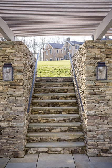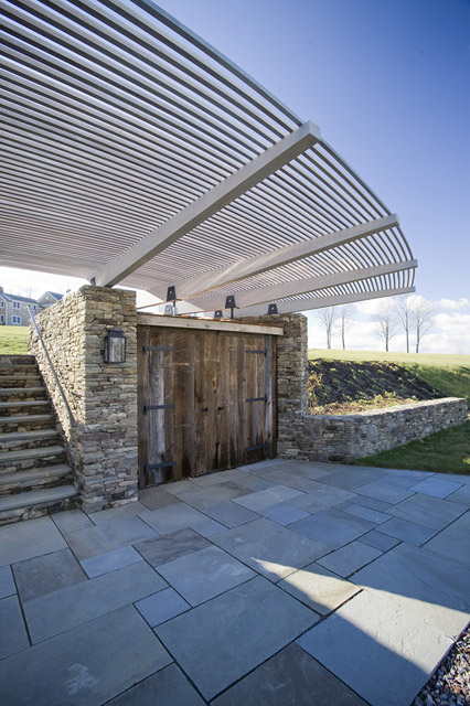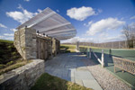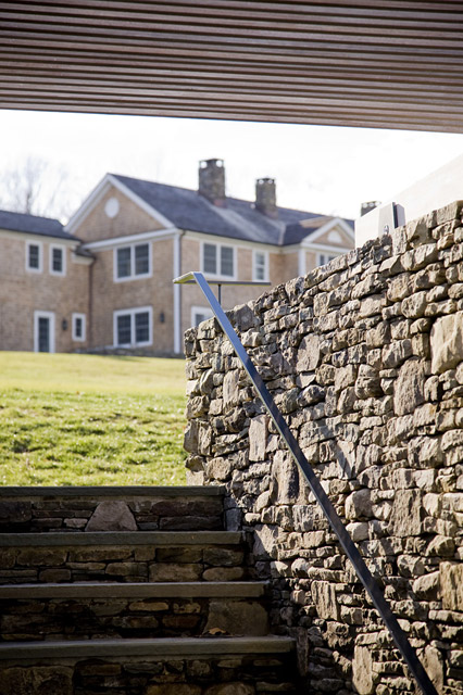 Nestled into the hillside, the tennis pavilion fits seamlessly into the landscape.